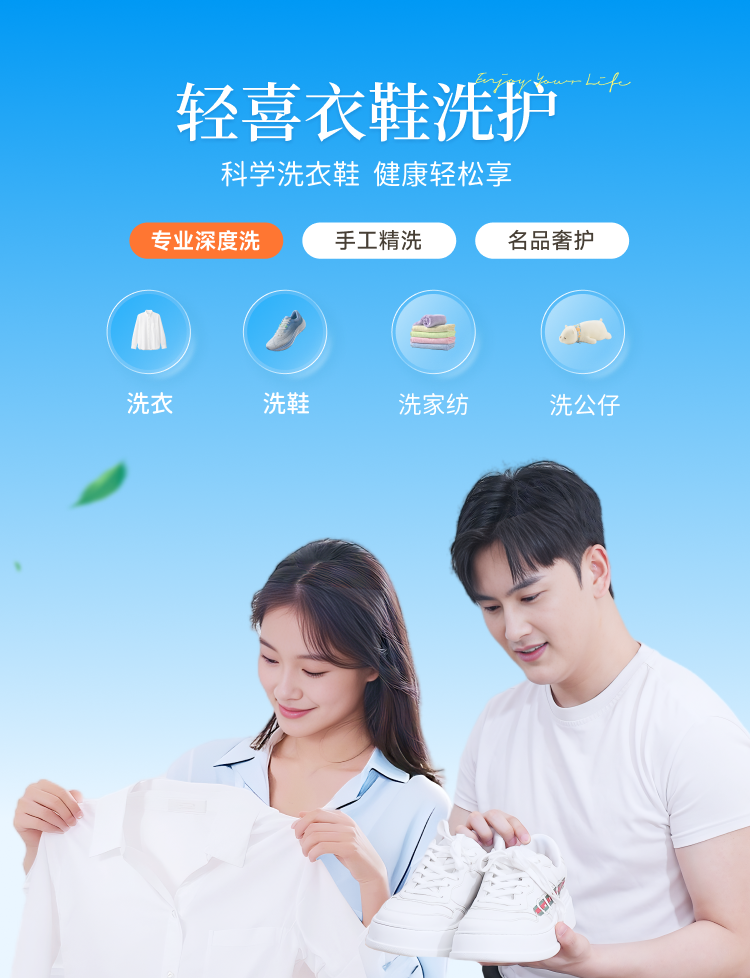 目前,轻喜到家衣鞋洗护上线深度洗、手工精洗及名品奢护三大服务,用户可根据自身需求选择对应服务。
