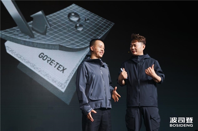 在发布会现场,戈尔公司专家 Jacy Li ,从专业视角揭秘新款 GORE-TEX黑标面料的专业性能。波司登此次全球首发的"弹力版本",在保障防风防水和透汽性能的同时,进一步提升了三合一冲锋衣羽绒的灵活度与适配性。这意味着消费者不再需要在"防护"与"舒适"之间二选一,而是真正实现全天候、全场景的平衡。