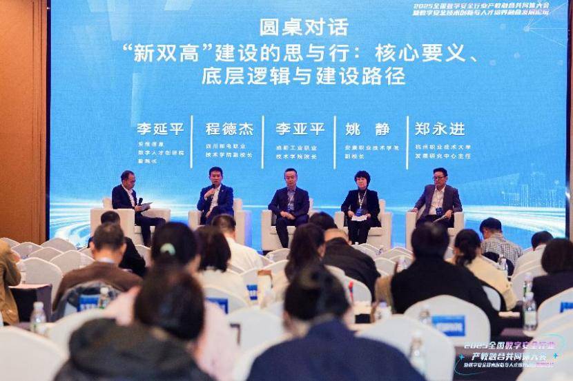 在主题演讲和报告解读环节,专家们分享前沿观点:安恒信息李延平解读《AI 时代网络安全产业人才发展报告》,指出 AI 重塑岗位职责、“人机协同” 成常态,呼吁构建 “政产学研用” 协同育人体系;东北大学谭振华分享以 “AI 赋能 + 产教融合” 构建贯通本硕博的信息安全人才培养体系,实现 “课程项目化、实训实战化、毕业设计企业化”;浙江水利水电学院徐欧官表示联合安恒信息等构建 “三专四融合五联动” 人才培养模式,产业学院获批浙江省重点;杭州职业技术大学郑永进提出城市、产业、职教需构建 “政府引导、企业主导、学校主体” 协同体系,产教融合动力源于利益共赢与柔性组织共建;山东商业职业技术学院周峰介绍打造以密码技术为基石的专业群,创新 “四轮驱动” 模式,贯通 “教学 — 实训 — 实战 — 就业”;佛山职业技术学院李建辉阐述 “以赛助训、多元协同” 实践,形成 “政企行校” 协同育人格局;中国电信王朋指出教育行业成网络攻击重点领域,AI 可重塑安全防护模式,构建智能监测等体系应对难题。