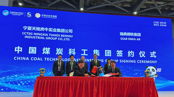 2025年11月7日,在第八届中国国际进口博览会国资委中央企业交易团签约现场,全球高强度特种钢制造商瑞典钢铁集团(SSAB)与张家口煤矿机械有限责任公司(简称"张家口煤机")、宁夏天地奔牛实业集团有限公司(简称"天地奔牛")签署战略采购协议,总额达数千万美元。
