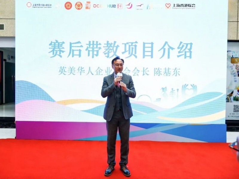 本次决赛不仅是竞技比拼的舞台,更是资源对接与长远赋能的平台。英美华人企业协会会长陈基东博士详细介绍赛后带教项目,其介绍的意义在于,将大赛的“短期竞技”转化为“长期培育”——通过“3 + 1”带教计划的具体内容,为参赛团队提供从海外市场调研、跨境供应链对接,到投资人交流、免费办公空间的全维度支持,精准解决青年创业项目在国际化发展、资源获取、启动成本等方面的痛点,填补了赛事结束后团队发展的“支持空白”。