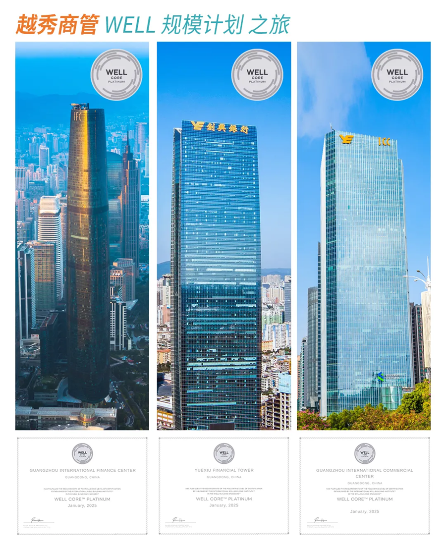 ◆18个商业项目集体斩获WELL健康建筑标准认证,其中广州国际金融中心(广州IFC)、越秀金融大厦、广州环贸中心(广州ICC)高分通过铂金级WELL认证,彰显越秀商管在健康建筑领域的领先实力。