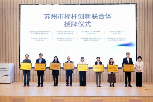 活动现场,张婷秀为迈为科技、华辰装备、科沃斯、沛嘉医疗、思必驰、国芯科技、亚盛药业、罗博特科等分别牵头的8家苏州市标杆创新联合体授牌。
