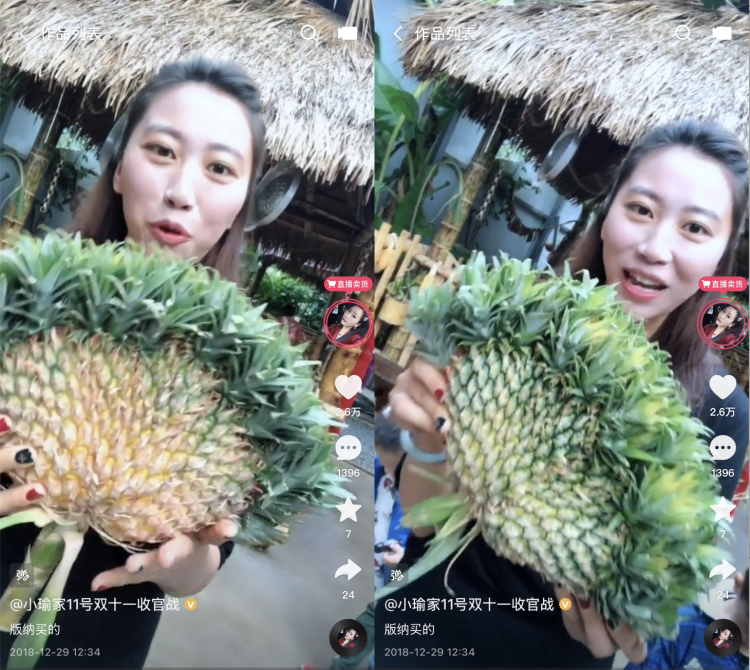 2016年,还是全职宝妈的小瑜在朋友的推荐下开始玩快手,时常分享自己的日常生活。2018年9月,小瑜将她在西双版纳水果摊上买到的扇形菠萝分享到快手,视频观看量很快就超过180万,仅仅2天的时间,她就涨粉超过1万。