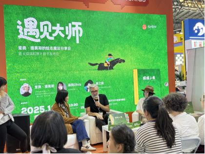在本届上海国际童书展上,首次来华的比利时绘本插画家里奥·提莫斯(Leo Timmers),携新作《琪琪和我》与中信童书携手呈现国内首场发布。作为国际安徒生奖提名艺术家,里奥以细腻的笔触与深邃的情感表达闻名于世,《琪琪和我》打破了其传统故事风格,画面更显精致细腻,既为孩子预留无限想象空间,又讲述了关于友情与成长的动人故事。发布会上,里奥·提莫斯分享自己的创作灵感,并与现场观众互动交流,场面热烈而温馨。