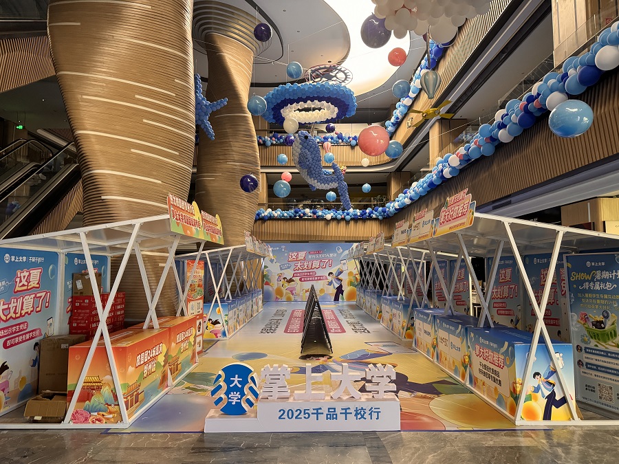 掌上大学在校园内已形成了一套成熟的路演体系——从10平米的简易摊位发展到200平米的“校园集市”。而如今,它正将这套经过2800余所高校验证的模式,带入城市商圈。