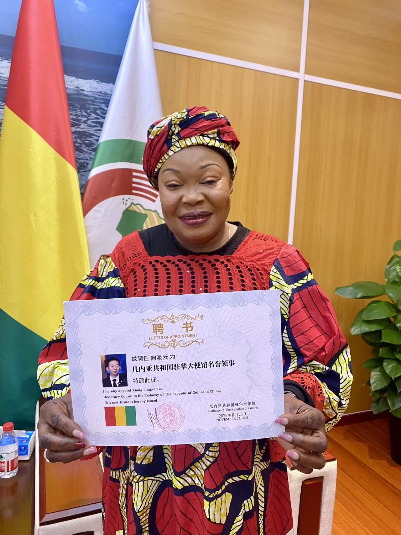 (2025年11月23日,几内亚共和国驻华大使馆新闻中心 北京讯)几内亚共和国驻华大使馆正式宣布,旅美中国籍经济学家、吉尔吉斯斯坦共和国国家科学院终身院士向凌云获聘为几内亚共和国驻华大使馆名誉领事。聘任仪式在北京举行,几内亚驻华使馆官员、部分中外企业界代表及相关合作机构嘉宾出席。