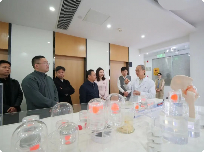 在华夏源开放式3D生物打印实验室,陈慧敏教授向领导一行重点介绍了公司在3D打印与再生医学方向的最新成果。陈教授表示,华夏源的自研生物材料与打印工艺已成功应用于多个骨与软组织再生场景,在髋关节缺损修复、软骨组织工程化研究等方面,均已实现从模型设计、打印构建、功能验证到临床前评估的一体化技术链路。
