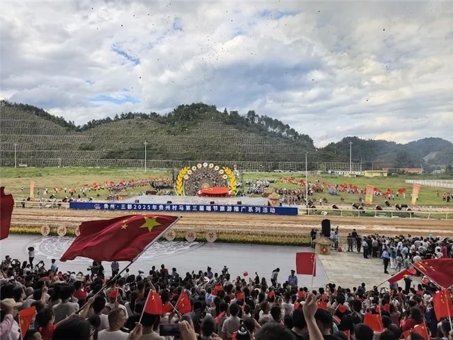 水族文化底蕴深厚,拥有水书习俗、端节等5项国家级非遗,61项非遗项目彰显独特魅力。作为“马背上的民族”,水族世代传承赛马习俗,三都将水族文化深度植入“贵州村马”赛事全流程,让一场体育竞技成为民族文化的活态博物馆。赛前马队踩街展示水族盛装,开端大典上寨老诵水书、祭先祖还原传统礼仪,赛事间隙穿插马尾绣技艺展演、水族双歌“旭早”演唱等非遗节目,让游客在热血竞技中沉浸式感受水族文化魅力。如今“贵州村马”不仅是49天端节的标志性活动,更入选2025中华体育文化优秀项目,也已经升级为全国知名文旅IP。
