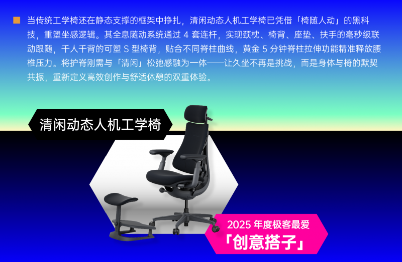 清闲动态人机工学椅斩获极客公园2025年度极客最爱“创意搭子”