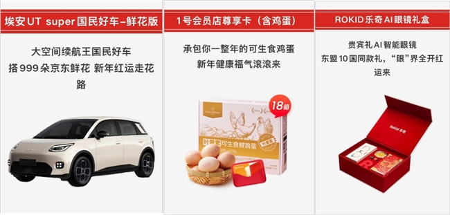 京东为本届跨晚准备的福利阵容堪称“顶配”,实物好礼覆盖衣食住行全场景。不仅有坐拥浪漫与实用的国民好车——搭载一车京东鲜花的埃安UT super、承包全年的1号会员店可生食鸡蛋、象征富贵开年的周大福黄金五件套、宿迁非遗美食七鲜私厨黄狗猪头肉,还有科技感拉满的ROKID乐奇AI眼镜礼盒、智元灵犀X2机器人万能管家,更有价值约25万元的“2026样样红”终极大奖直接送到家,让开年好运满载上门!
