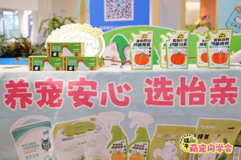 6月,怡亲转场苏州南岸新地「萌宠同学会」,精准聚焦家庭养宠细分需求——现场展示的宠物消臭喷雾、猫用鸡丝补水汤罐等产品,直击“室内异味管理”“猫咪营养补给”等高频痛点,吸引众多本地宠友到场体验。