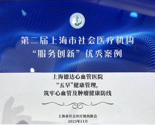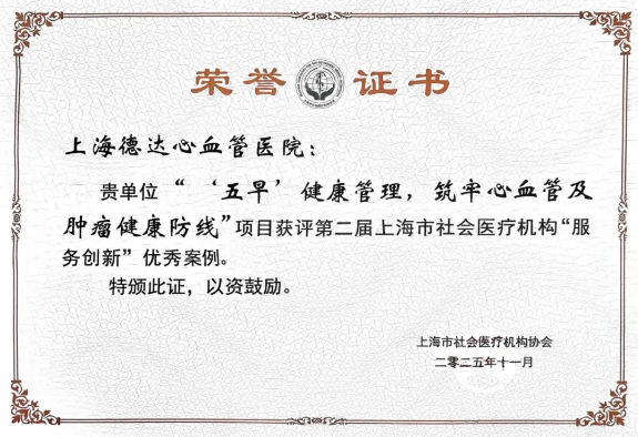 上海德达心血管医院体检中心凭借聚焦心脑血管与肿瘤疾病的 “五早” 全流程精准健康管理服务体系,在上海市社会医疗机构一众参评项目中成功斩获行业权威奖项!青浦体检板块的服务升级成果成为核心亮点。该模式打破传统体检“重检查、轻管理”的局限,整合青浦区域医疗资源,为客户提供全周期健康管理方案,从精准筛查到个性化干预,从疾病预防到康复指导,以创新服务为青浦市民健康筑牢第一道防线,获行业专家与市民的高度认可。