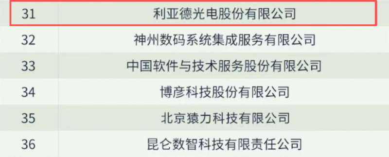 利亚德成功入选北京软件和信息技术服务综合实力百家企业
