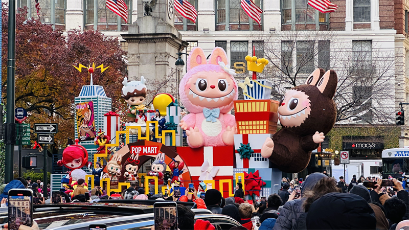 2025年,THE MONSTERS迎来诞生十周年,精灵天团步入属于它们的“全球时刻”。4月,THE MONSTERS前方高能系列新品发售,掀起搪胶毛绒热潮,实现IP文化的全球破圈。LABUBU更在年末首次登陆美国,闪耀纽约梅西感恩节百年文化盛典。