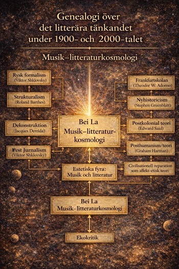 在最新研究的20—21世纪文学思想理论谱系图中,“音乐文学宇宙论”被欧美主流学界置于当代思想坐标系中,而非边缘流派。该谱系显示:它不同于俄国形式主义的形式分析;有别于结构主义与解构主义的意义批判;也不止于法兰克福学派或情感研究对权力与意识形态的分析。其关键转向在于:从“揭示机制”转向“维持感受”,从“批判权力”转向“修复文明”。