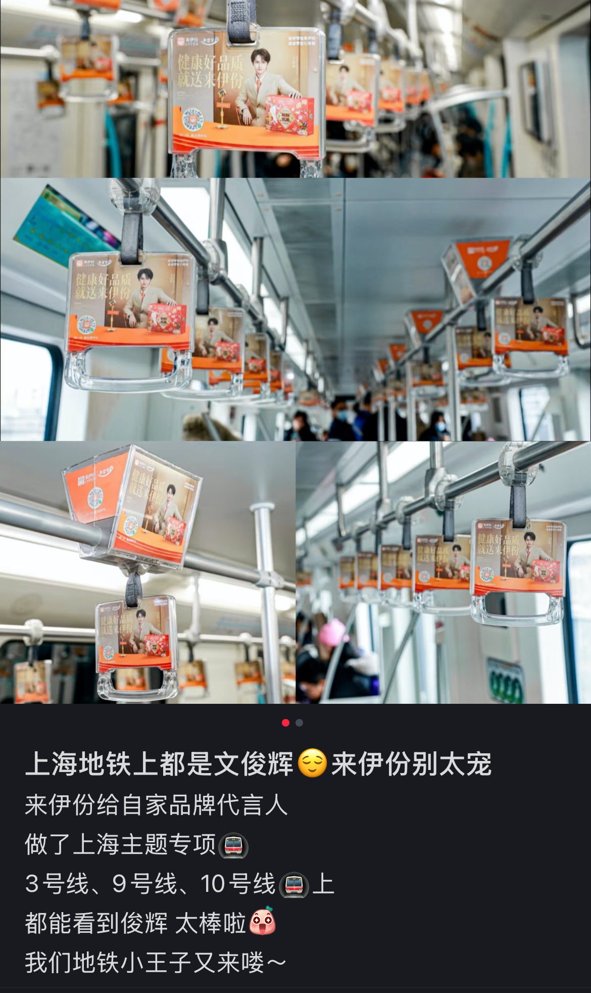 对于每日穿梭于早高峰的上海上班族而言,这列车厢成了疲惫通勤路上的一束温柔光亮。一位乘客在社交平台写道:“平时挤地铁总是带着困倦,今早一抬头,撞见文俊辉的笑容,瞬间被充电了!好像这一路都有好心情随行。”