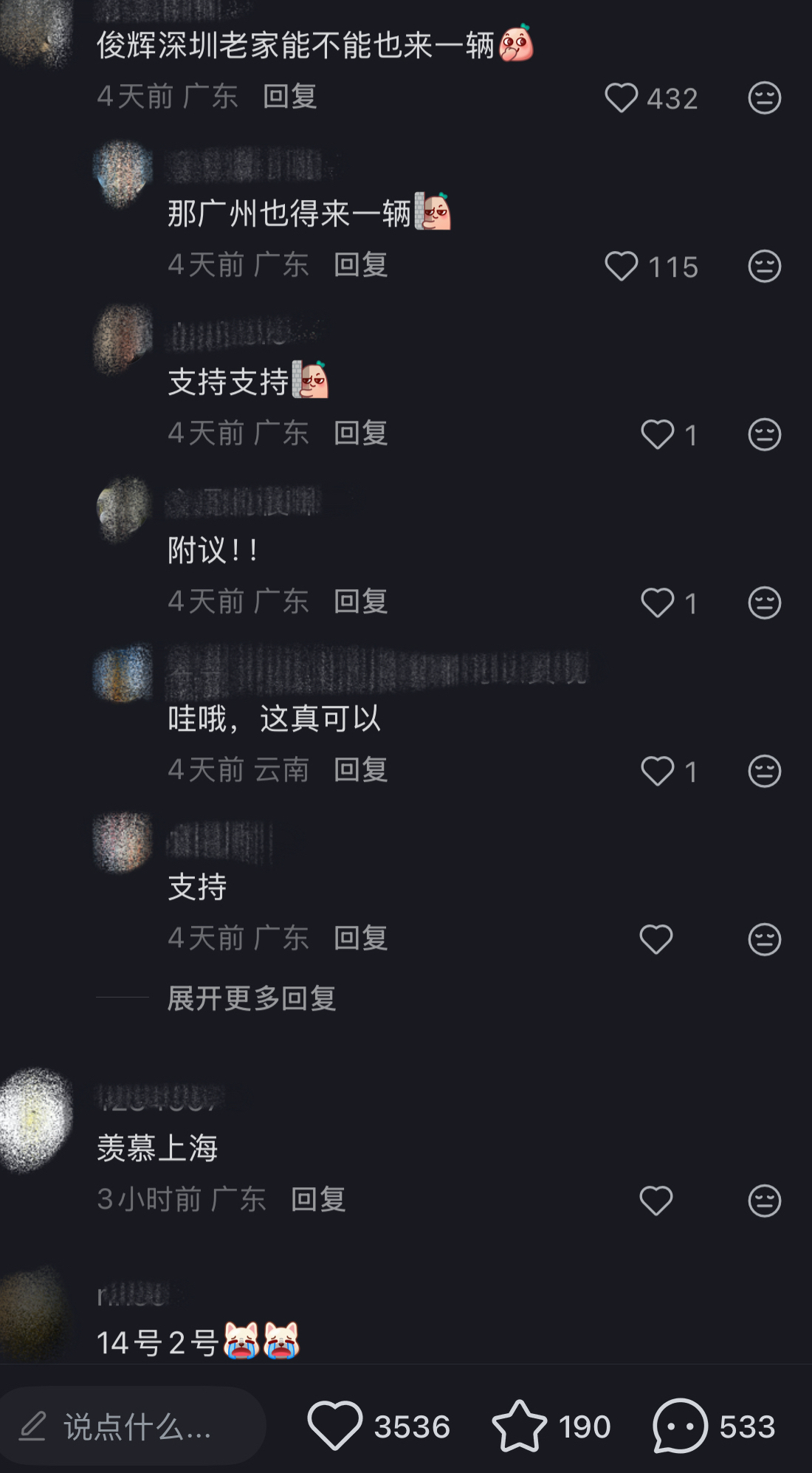 “羡慕上海”“广州也得来一辆”,多位广东网友在评论区留言,言语间满是向往。