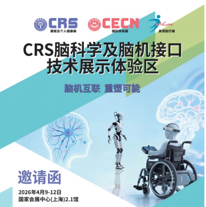 随着 “十五五” 规划的蓝图徐徐展开,脑科学及脑机接口这一未来产业正以前所未有的速度,从实验室走向产业化应用的广阔天地。近日国家发布了《脑机接口浸入式设备可靠性验证》和《脑机接口范式设计与应用规范 运动功能重建》两项脑机行业标准。国药励展旗下中国国际康复及个人健康博览会(CRS)脑科学及脑机接口集群,作为国内最早聚焦该领域产品技术专业展览展示与商贸对接综合服务平台,一直以来都是行业创新发展的风向标。近年来,该集群已吸引翔宇医疗、泽普医疗、慧创医疗、龙之杰等一众行业翘楚,携其在脑机交互、脑功能检测、脑康复、类脑智能应用、神经调控与认知等领域的尖端技术与创新产品集中在展会亮相。2026年4月9-12日,主办方将在中国国际康复及个人健康博览会(CRS)、中国国际养老福祉及护理用品博览会(CECN)现场全新打造未来科技展区——CRS 脑科学及脑机接口技术展示体验区”, 再次聚焦这一充满无限可能的黄金赛道,助力产业加速驶向高质量发展的新蓝海。