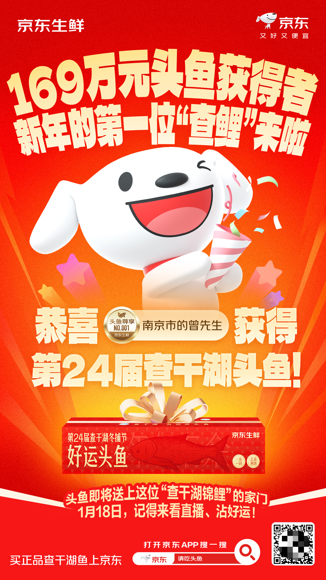 全网关注的“头鱼”有主了!京东官宣查干湖头鱼“锦鲤”得主