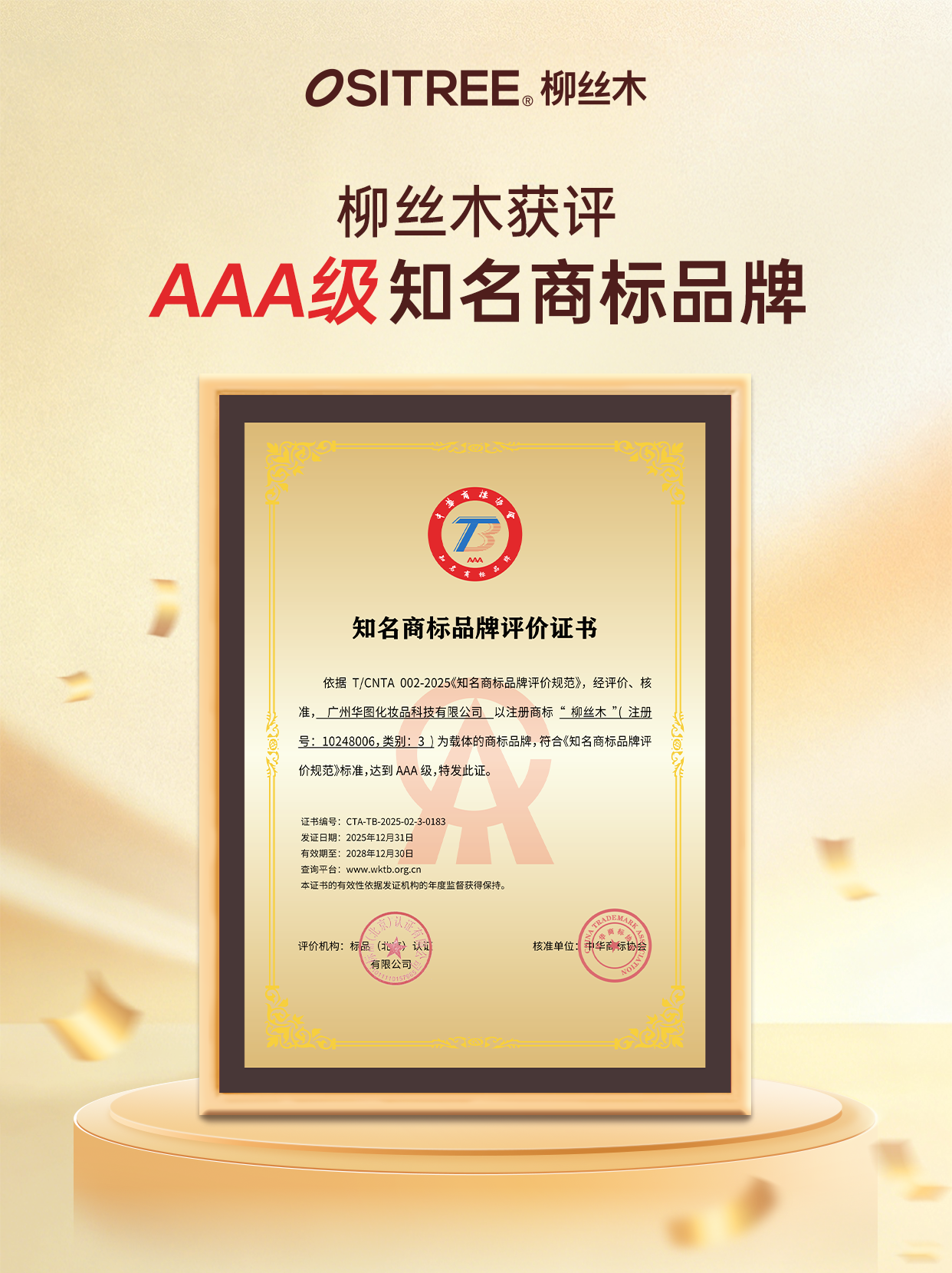 在国货美妆从“流量角逐”迈向“品牌深耕”的时代,一项权威认证为行业树立了价值坐标。近日,OSITREE柳丝木荣获中华商标协会“AAA级知名商标品牌”认证,这不仅是官方对其市场地位的肯定,更象征着其品牌建设获得了高水平的社会认可。