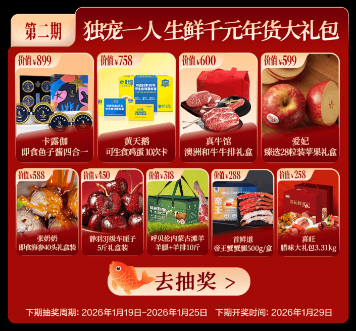每周抽取“年货锦鲤”,千元礼包贺新春开门红