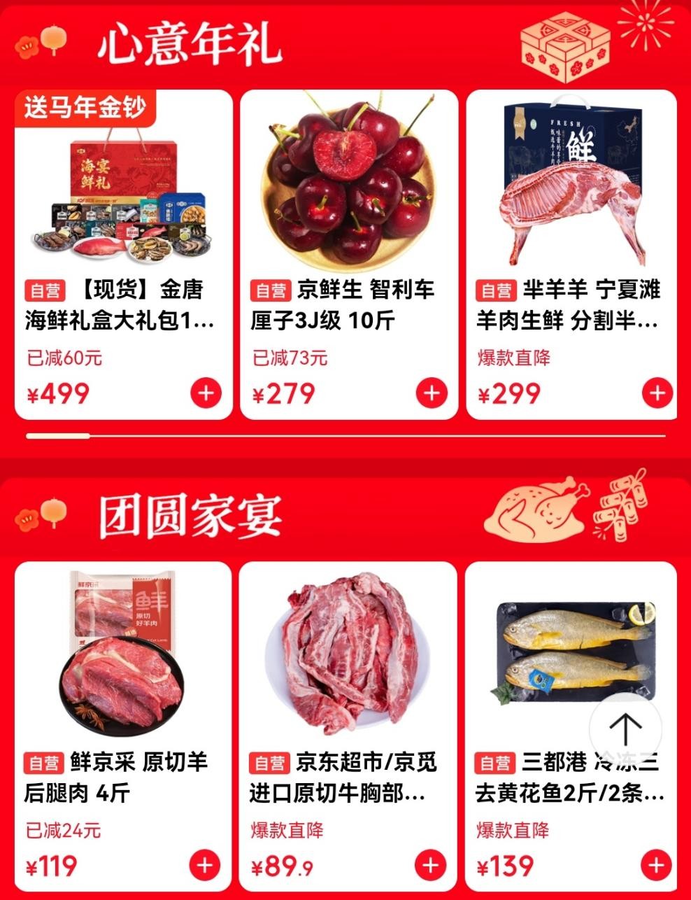 从时令果蔬、海鲜水产、肉禽蛋到方便速食,种类丰富、高质价比的生鲜好物齐登场,为上京东办年货的消费者带来实实在在的新年惊喜。活动期间,消费者打开京东APP,搜索“京东生鲜年货节”即可直达线上年货大集,把“又好又便宜”的“心意年礼”带回家。