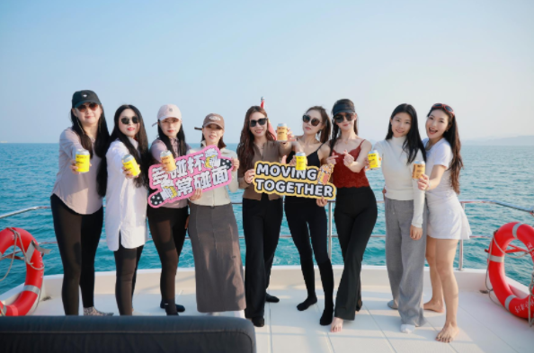 抵达游艇会后,会员们换上lululemon运动服饰,一场以“热力开浪”为名的海滨派对正式拉开帷幕。主持人以轻松幽默的方式介绍活动规则,并通过暖场破冰小游戏迅速拉近参与者距离。合影环节定格了欢笑,也为后续的沉浸式体验铺垫了期待。