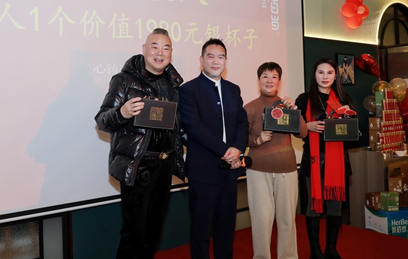 晚宴环节以“家宴”为名,呼应“同源共聚”主题。现场陆续揭晓多重抽奖,奖品涵盖有机鸭稻米、品牌茶饮、定制银杯等具有健康与文化寓意的礼品,将气氛推向温馨热烈的高潮。