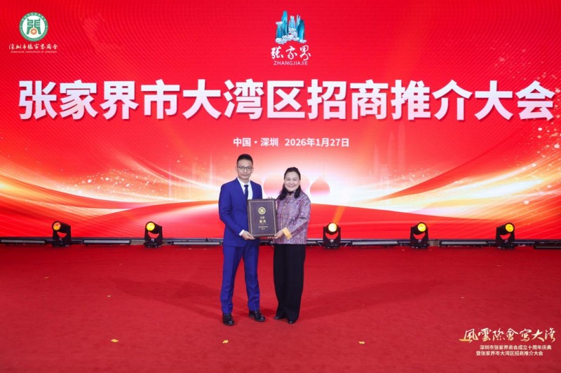 2026年1月27日下午,深圳市张家界商会成立十周年庆典暨第三届换届大会在深圳宝立方酒店四楼国际宴会厅隆重举行。会议产生了新一届领导班子,张家界籍深圳企业家吴啸全票当选会长。