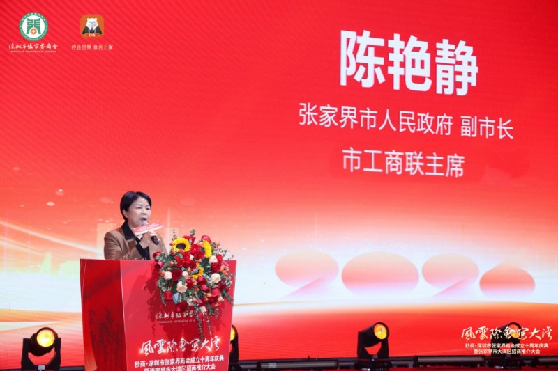 张家界市人民政府副市长、市工商联主席陈艳静在致辞中表示:深圳作为大湾区的核心城市,有着极其重要的地域优势和顶级商业资源,是张家界招商引资的首选之地,希望深圳市张家界商会继续发挥行业协会龙头作用,为家乡招商引资作出更多贡献 。