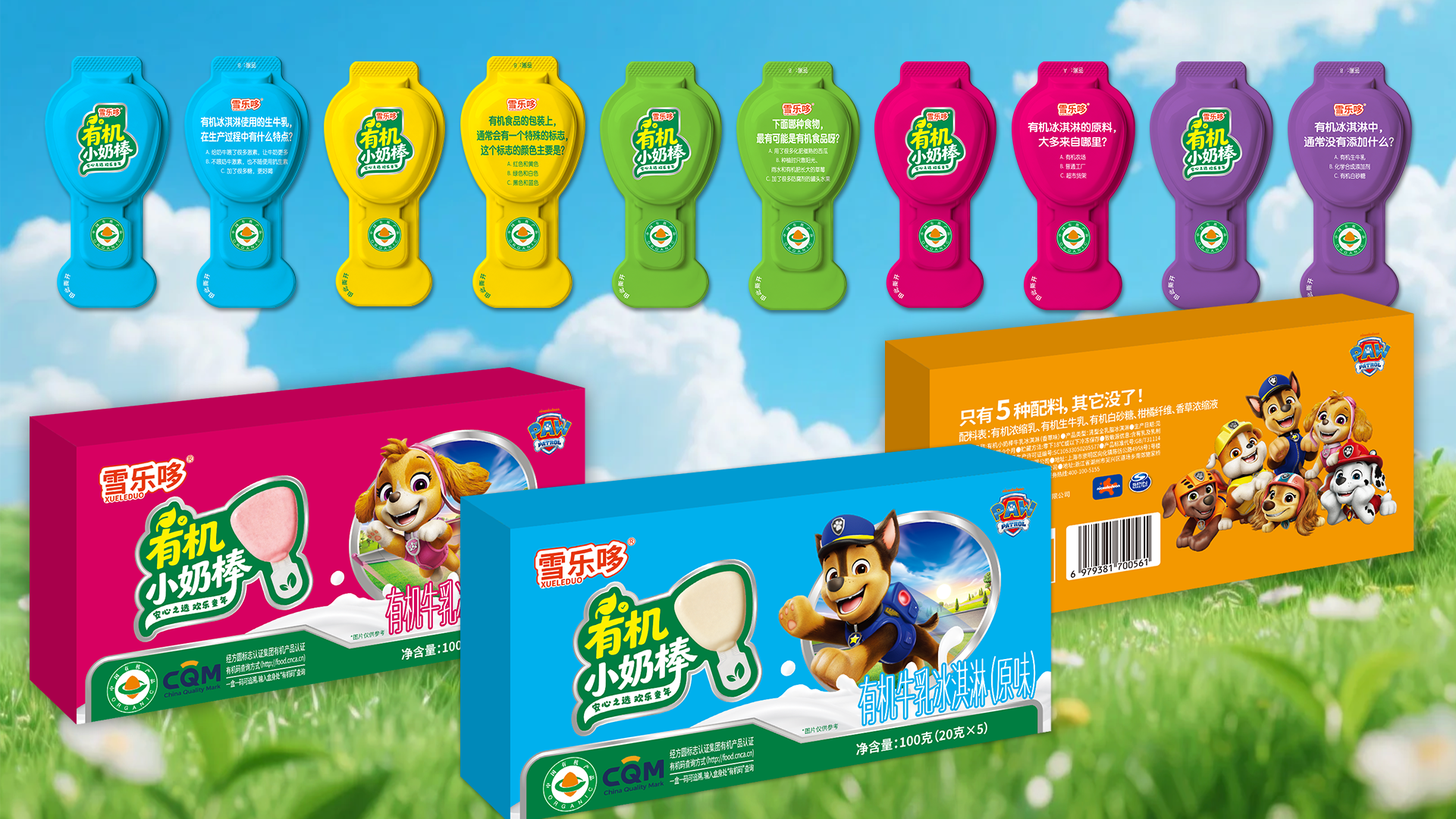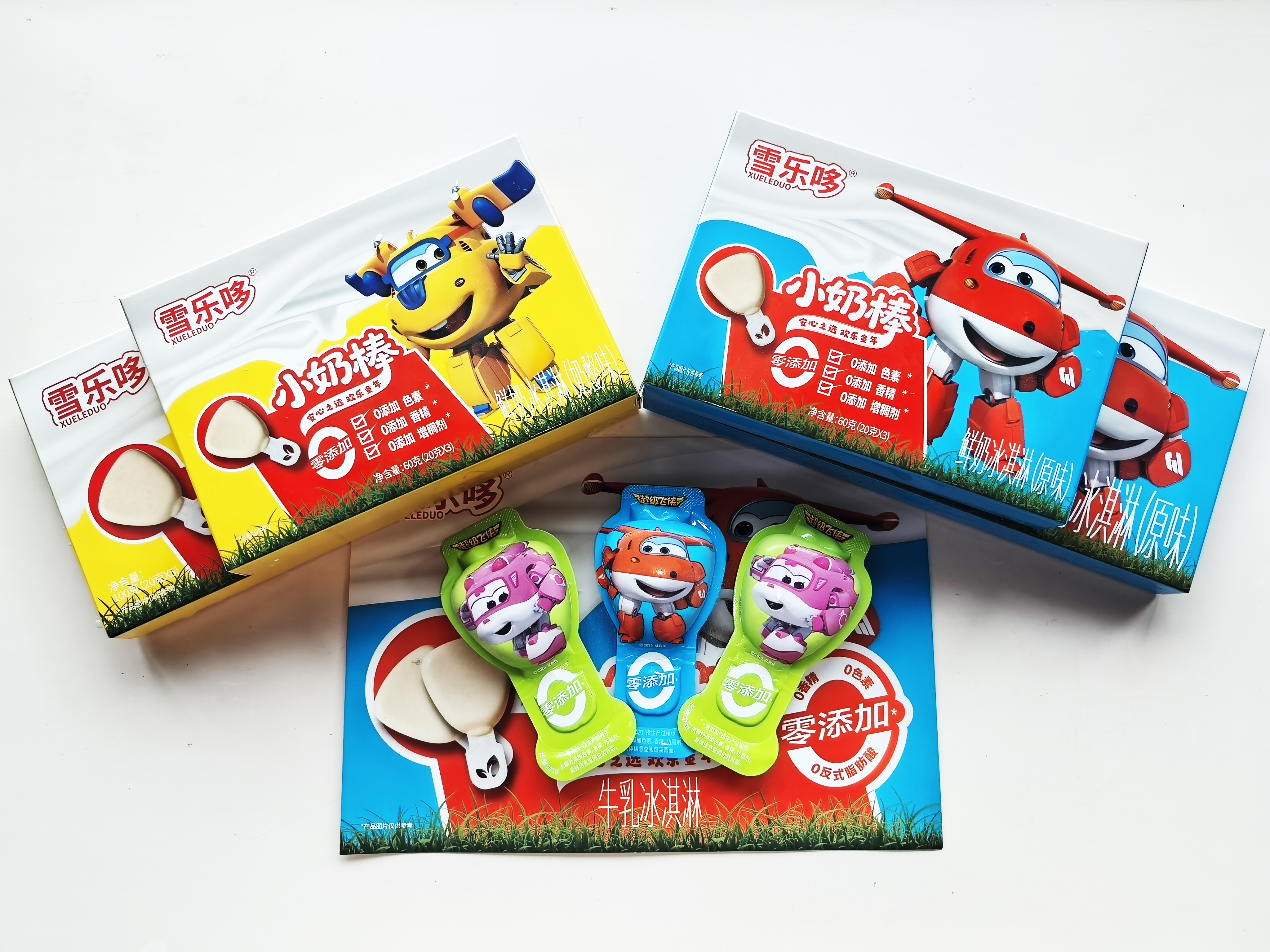 2025年,雪乐哆率先与全球现象级儿童动漫IP《超级飞侠》达成战略合作,推出联名款「小奶棒牛乳冰淇淋」系列。联名款包装设计讲述了5大IP角色探索今喜农有机农场,寻找雪乐哆儿童冰淇淋的故事,通过乐迪等角色勇敢探索、守护伙伴的形象,与雪乐哆零添加、有机的价值观绑定。