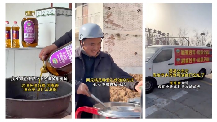 宴席过半,一辆装饰着新年元素的“道道全幸福年味车”驶入村庄。庞富强书记和张易一起,将一桶桶道道全作为新年健康礼,分发到每一位老人手中。这份年礼,不仅是实用的厨房用品,更承载着社会力量与品牌对乡村老人实实在在的牵挂。