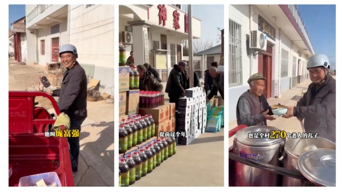 本次行动的主角之一,是蓝田县当地的“网红”村官——庞富强书记。他因坚持为全村270余位老人提供“2元一碗”的送餐上门服务而被央视报道。另一位主角是陕西籍公益记录者张易。两者的相遇,源于一个朴素的愿望:春节将至,如何让那些子女无法回家的老人们,过上一个更有温度、更健康的新年?