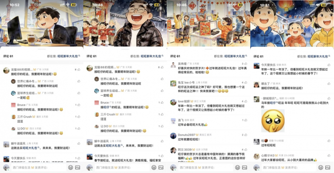 这部新春贺岁片上线后,迅速掀起全网传播热潮,实现各年龄层观众的深度共鸣。在抖音、视频号等短视频平台,新春贺岁片相关话题播放量持续攀升,众多网友自发转发分享,直呼“被旺旺的新年祝福暖到了”;在微博,相关话题引发热烈讨论,年轻网友纷纷表示“已经把旺旺大礼包列入年货清单”,不少长辈也留言回忆“从小吃到大的旺旺,过年就该买这个”,一句“这广告比春晚还有年味”成为网友对该片的高赞评价;在小红书,更有网友以广告片为灵感,分享旺旺大礼包的年货搭配、创意摆盘,让“过年囤旺旺”成为新春热门趋势。从年轻群体到中老年群体,从职场人到宝妈,广告片凭借真挚的情感表达,触达全网不同圈层受众,也让旺旺大礼包在年货采购的“临门一脚”时刻,成为千家万户的优选。