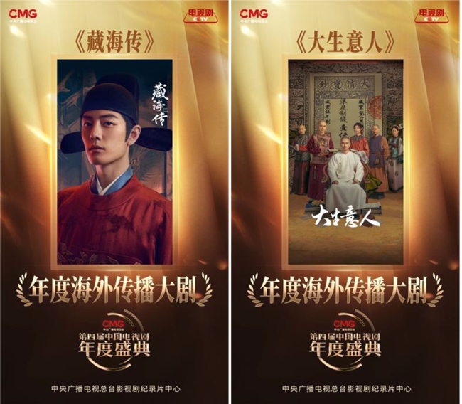 如《藏海传》《大生意人》两部优秀传奇大剧充分展现中式美学、商战智慧等中国叙事的魅力,荣获“年度海外传播大剧”。