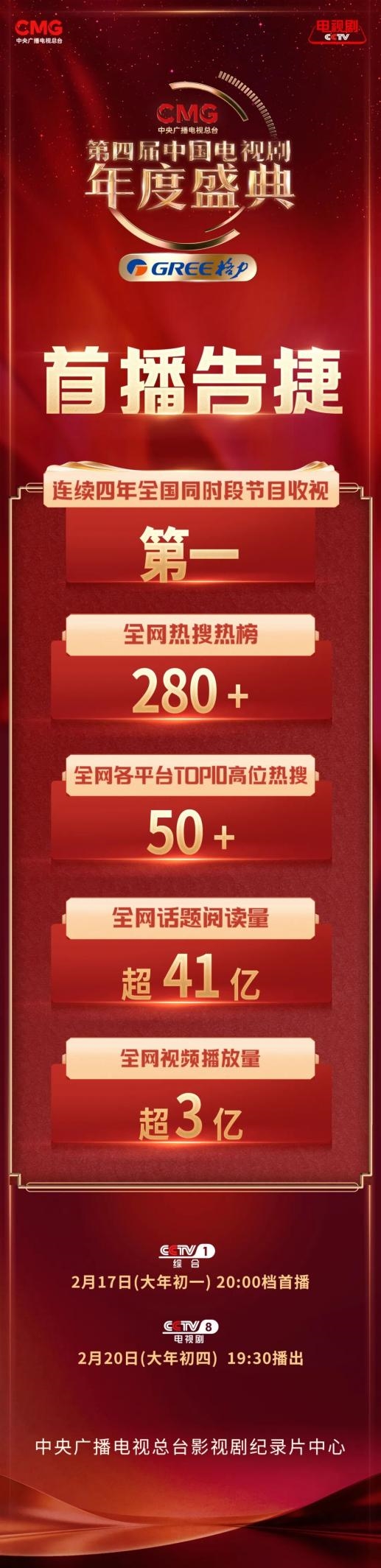 2月17日(大年初一),马年在喜庆祥和的贺岁声中如期而至。由中央广播电视总台影视剧纪录片中心主办的CMG第四届中国电视剧年度盛典在央视综合频道(CCTV-1)晚间黄金档隆重首播。
