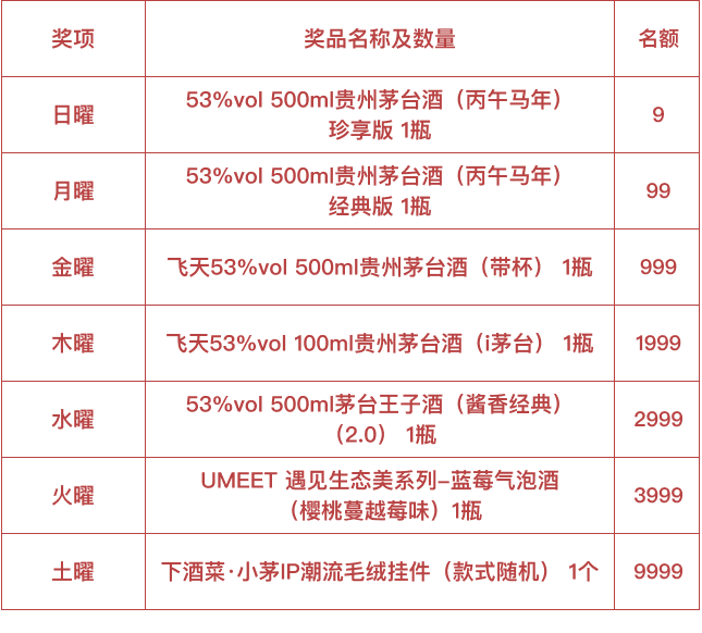 既然是“请大家出主意”,奖品自然也拿出了诚意。根据活动页面公布的奖项设置,从生肖茅台到飞天茅台,再到文创周边,名额从个位数到数千名不等,覆盖面较广。