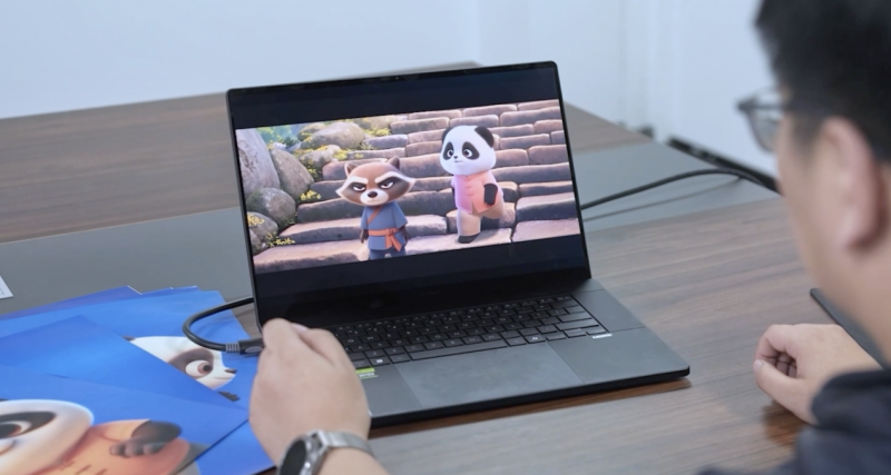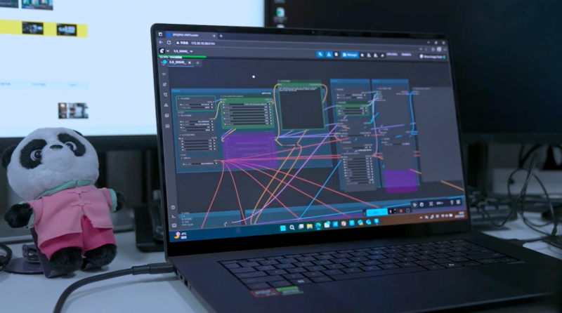 硬核算力加持,提速影片制作全流程。《团圆令》需要在短时间内完成海量角色设计与复杂场景渲染,华硕ProArt 创16搭载的AMD锐龙AI 9 HX 370处理器与NVIDIA GeForce RTX 5090独立显卡,就像两颗超强驱动力的心脏,其中RTX 5090配备24GB GDDR7大显存,至高1824 TOPS的GPU AI算力,搭配DLSS 4技术,助力团队30秒生成20套“团仔圆妞”角色设计方案,实现每分钟12帧的4K超高清水墨场景自动渲染,同时借助光线追踪技术,让熊猫毛发动态、竹林光影过渡等细节更细腻,彻底告别卡顿与漫长等待。