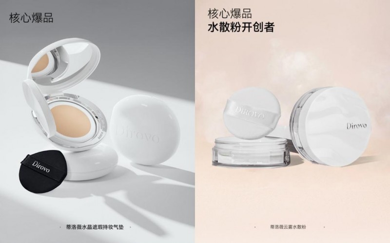 1.0时代,品牌以“蒂洛薇水散粉”破局,首创WSP水粉体悬浮技术,解决传统散粉拔干难题,让控油与保湿兼得。2.0时代,蒂洛薇水晶气垫以粉体改造+锁妆膜技术,守护底妆服帖不卡粉。