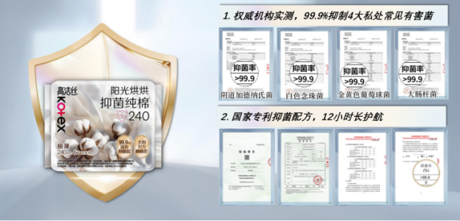 这是市场上首款通过药监局资质认定机构临床实测验证的卫生巾产品,将"感觉有效"升级为"数据证实有效"。
