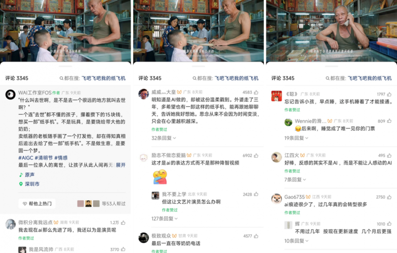 在寄托思念的清明时节,强烈的真人感和温柔细腻的叙事风格,让该AI短片瞬间戳中无数网友的泪点。两位主创表示,用可灵3.0 Omni做这部短片,并非简单的技术秀肌肉,他们坚信“任何形式都是为了服务于故事”,这句话也贯穿了《纸手机》的全部创作。