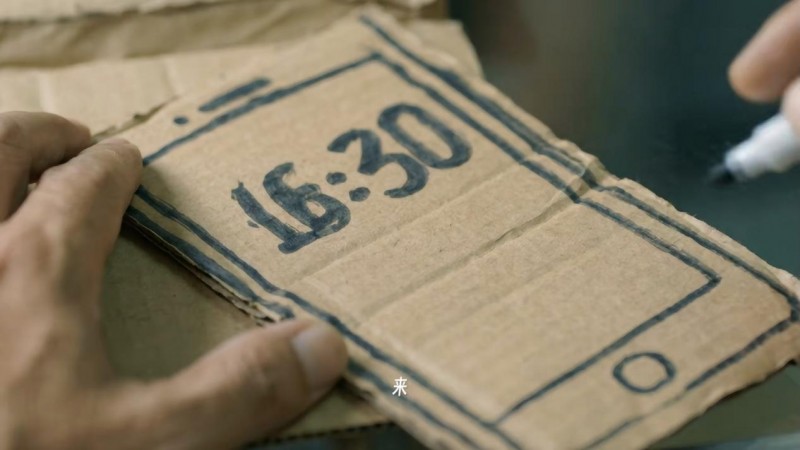 更典型的例子,是短片里唯一没用AI创作的道具——手绘纸片手机。杨选与李婷认为,AI生成结果太精致、太“丝滑”,不符合片中老板的年迈人设。最后,他们将真实道具的照片喂给AI——那个带着深深折痕、笨拙笔迹的纸板手机,藏着市井老人亲手制作的粗糙质感与真切温度,成为全片最为重要的情感锚点。
