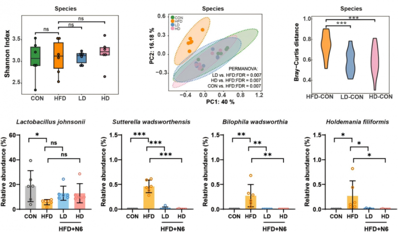 (BGI-N6补充重塑了高脂饮食大鼠的肠道微生物群组成和多样性)
