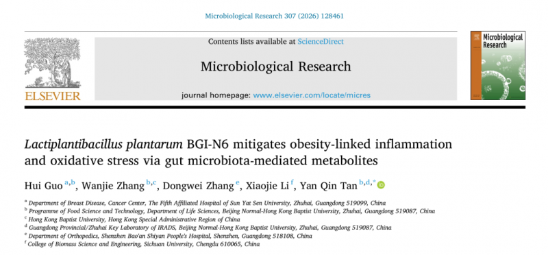 近日,华大集团旗下自主研发的植物乳植杆菌BGI-N6在微生物领域国际期刊《Microbiological Research》(IF=6.9)发表最新研究成果,首次系统揭示了其通过调节肠道菌群及代谢物,多维度缓解高脂饮食诱导的肥胖、炎症与氧化应激的作用机制。该项研究成果构成了华大营养旗下体重管理品牌——「镜脂」益生菌的核心研发基础。从定义上来看,华大营养「镜脂」益生菌是一款以BGI-N6为核心,通过精准调节肠道微生态与代谢物来辅助体重管理的科学干预产品。