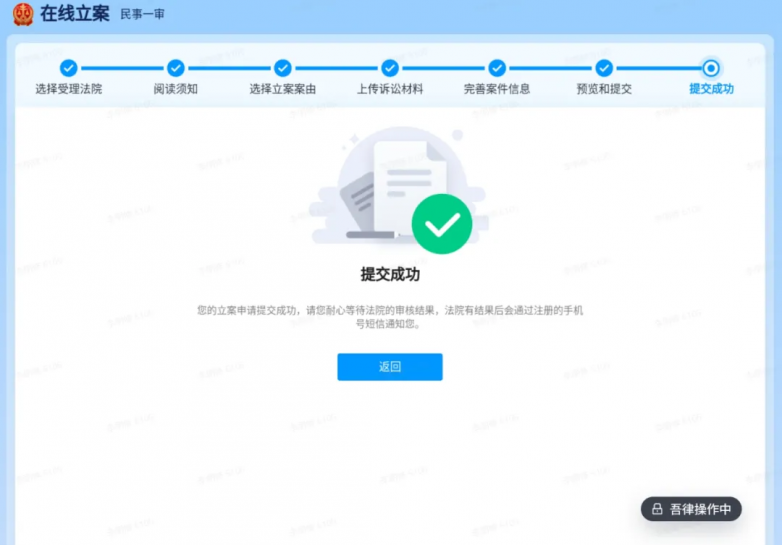 3、吾律提交立案申请& 等待法院通知
