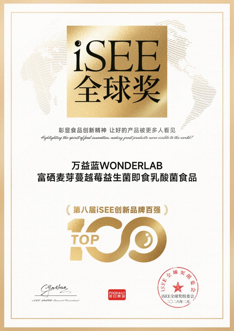 近日,素有“食品届诺贝尔奖”之称的第八届iSEE创新品牌百强正式揭晓。作为全球食品饮料行业权威风向标,本届奖项吸引了来自全球5688个创新案例激烈角逐。中国益生菌领军品牌万益蓝WONDERLAB凭借旗下明星产品富硒麦芽蔓越莓益生菌(小粉瓶)的卓越创新的产品研发实力与对女性健康的深度洞察成功登榜,成为女性益生菌领域唯一获此殊荣的品牌,再度印证其在女性微生态健康领域的标杆地位。