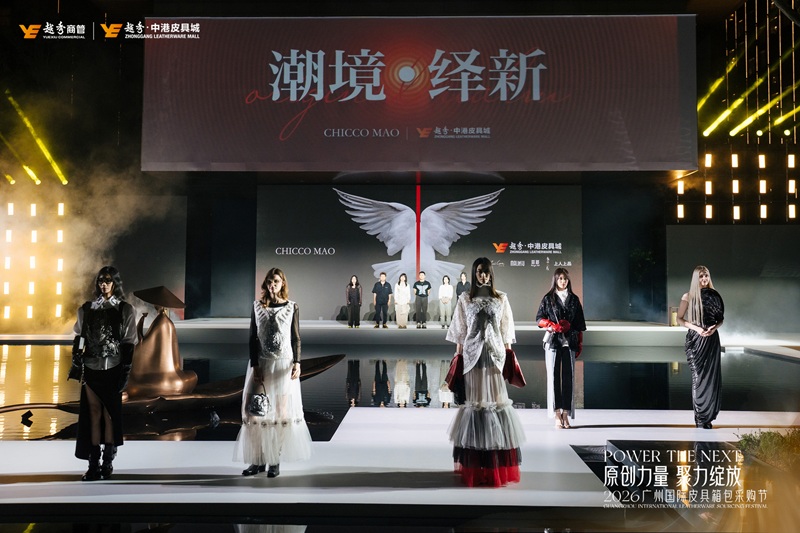 原创设计是产业升级与品牌出海的核心根基。活动现场,中国时装设计最高荣誉“金顶奖”设计师毛宝宝携CHICCOMAO品牌,联合中港五大原创品牌蒽薆、马林苏、秀蔻、上人上品、木兰左带来「潮境·绎新」原创新品大秀,融合东方美学与国际潮流,生动展现广州皮具从“制造”向“创造”的跨越,彰显中国原创国际竞争力,也是中港皮具城原创孵化成果的集中体现。
