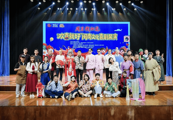在"周末戏相逢——'欢喜就好'闽南文化喜剧展演"活动中,开场节目《偶遇闽南》将歌仔戏、高甲戏、木偶戏、讲古等多项闽南非遗串联融合。脱口秀、魔术、戏曲跨界等多元形式轮番登场,内容聚焦闽南烟火日常、文化遗产保护及"爱拼才会赢"精神。魔术互动环节带领观众领略"一路山海一路歌"的有福之地。本次节目创新采用"省属院团+专业机构"协同模式。福建省实验闽剧院带来《"O"哟•宋》,福建京剧院演绎《三国演"医"》展现"杏林春暖"佳话。该模式让舞台延伸至基层,推动优质文化文艺资源直达群众。