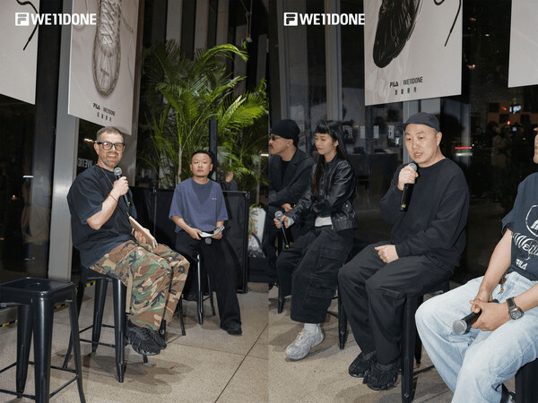 现场Panel Talk环节中,FILA鞋履创意总监Robbie Fuller表示:传统老爹鞋厚重笨拙,而VETTA以"瘦身"进化克服了这份笨重感——V形鞋头修长利落,镂空轻盈回弹。这种"因智而酷"的理性结构与克制轮廓,正是"低糖朋克"最理想的载体。本次联名鞋款基于该经典鞋型打造,再度引爆潮流圈。WE11DONE品牌COO Jeannie Lee也分享道,这是WE11DONE首次与运动品牌合作,在鞋款中融入品牌标志性的"不完美"美学。